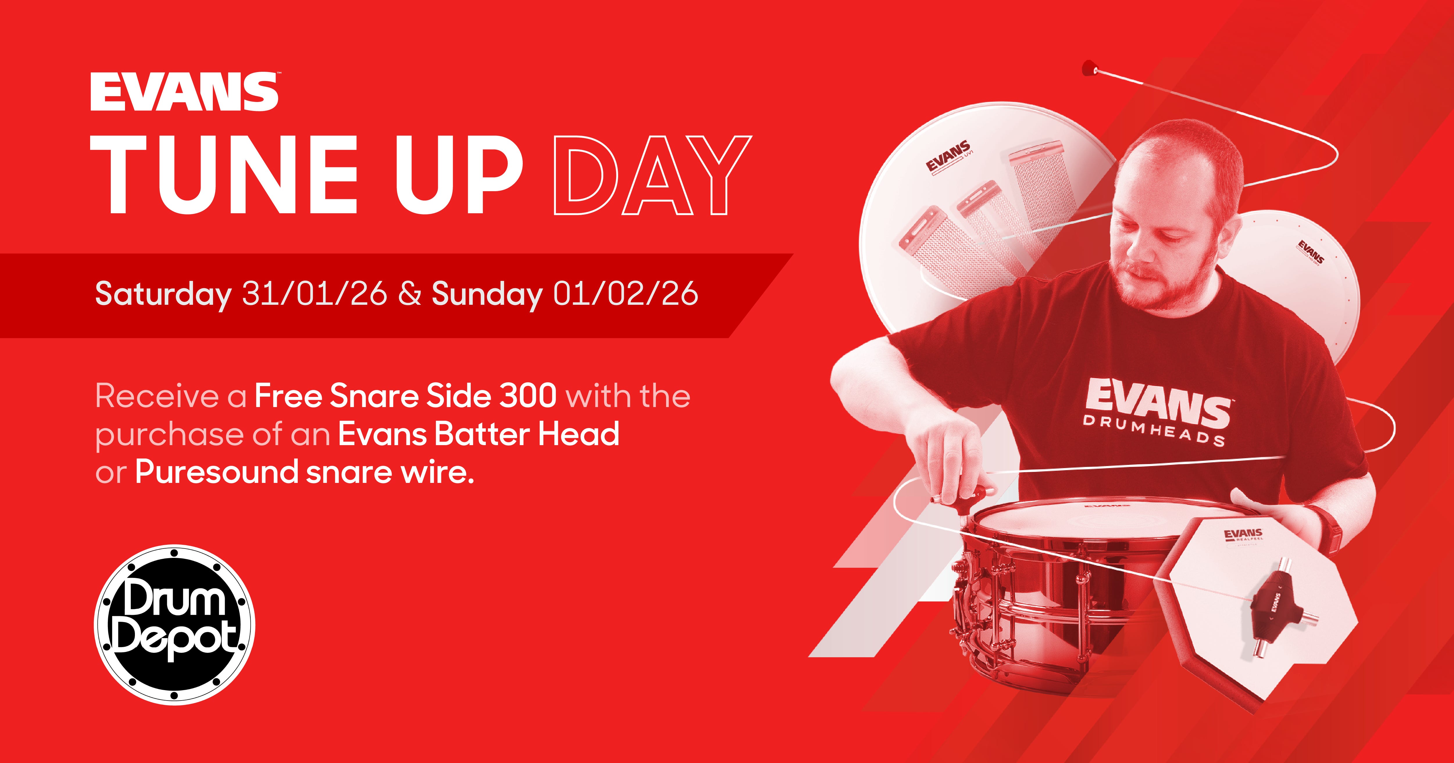 Ben will be in-store Saturday 31st January (10am to 5pm) AND Sunday 1st February (10am to 4pm) to work his magic. Chats, hangs, head choices AND drums tuned to perfection by a guru.